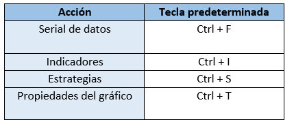 Teclas de acceso rápido para acciones del gráfico