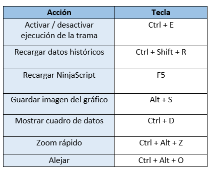 Atajos de teclado esenciales en NinjaTrader (Hotkeys)